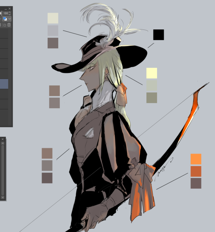 時間あれば一日一枚、練習として描きたい。毎回同じ様な構図で練習とは……なんですが、練習と言い張る。各部位のカラー。