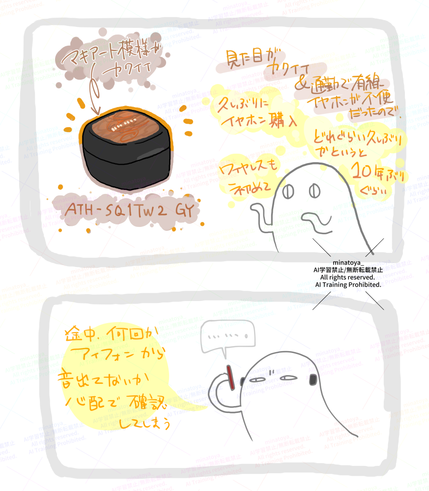 オーテクは今も使っていますがATH-ESW9 以来なので、こんな最先端のものねぇ……使いこなせるんでしょうか。途中iPhoneから音出てないか心配で確認したりね。(たまに電車で音漏れが凄まじい人がいるので)