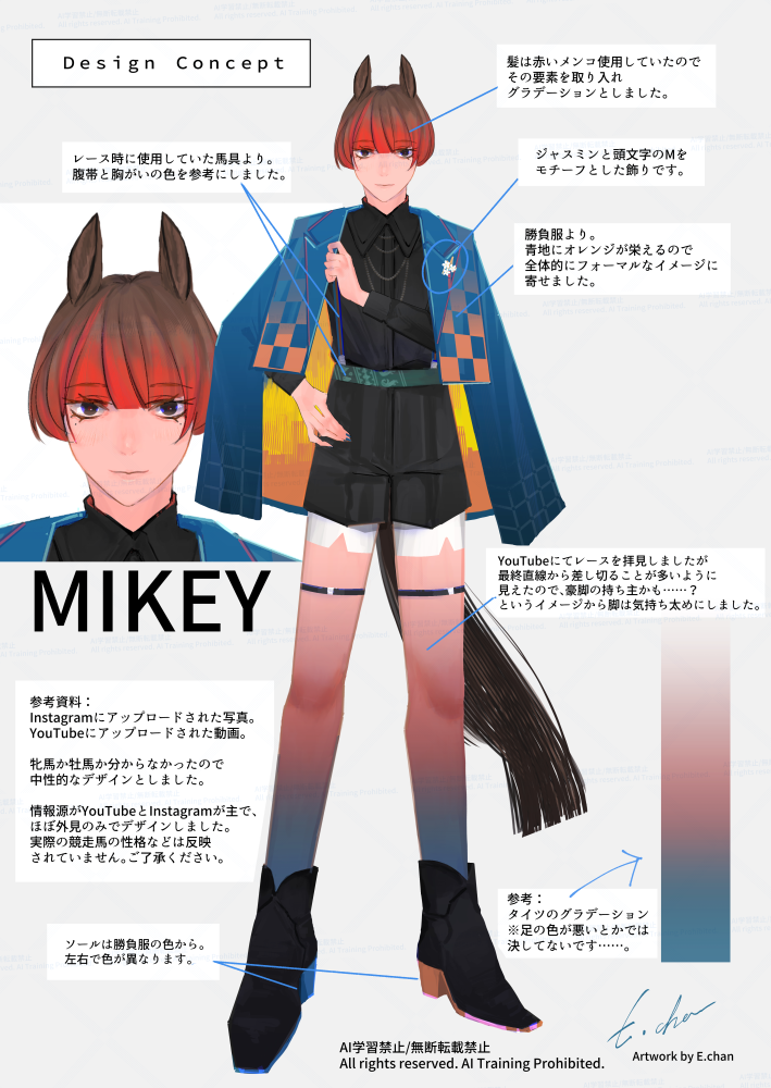 『タイ競走馬 擬人化キャラクター企画』に応募した作品になります。