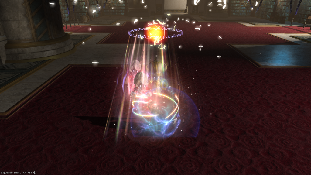 立体魔法は破壊、エンシェントエアロ・ストーン・ホーリーは範囲エリアの対極の位置へ離れて対応しましたが、実際は範囲内に入って全体の被弾を抑えるみたいです。毎回思うんですが、対処法を見つける人は何故あのサークルの中に入ろうと思うのだ……。